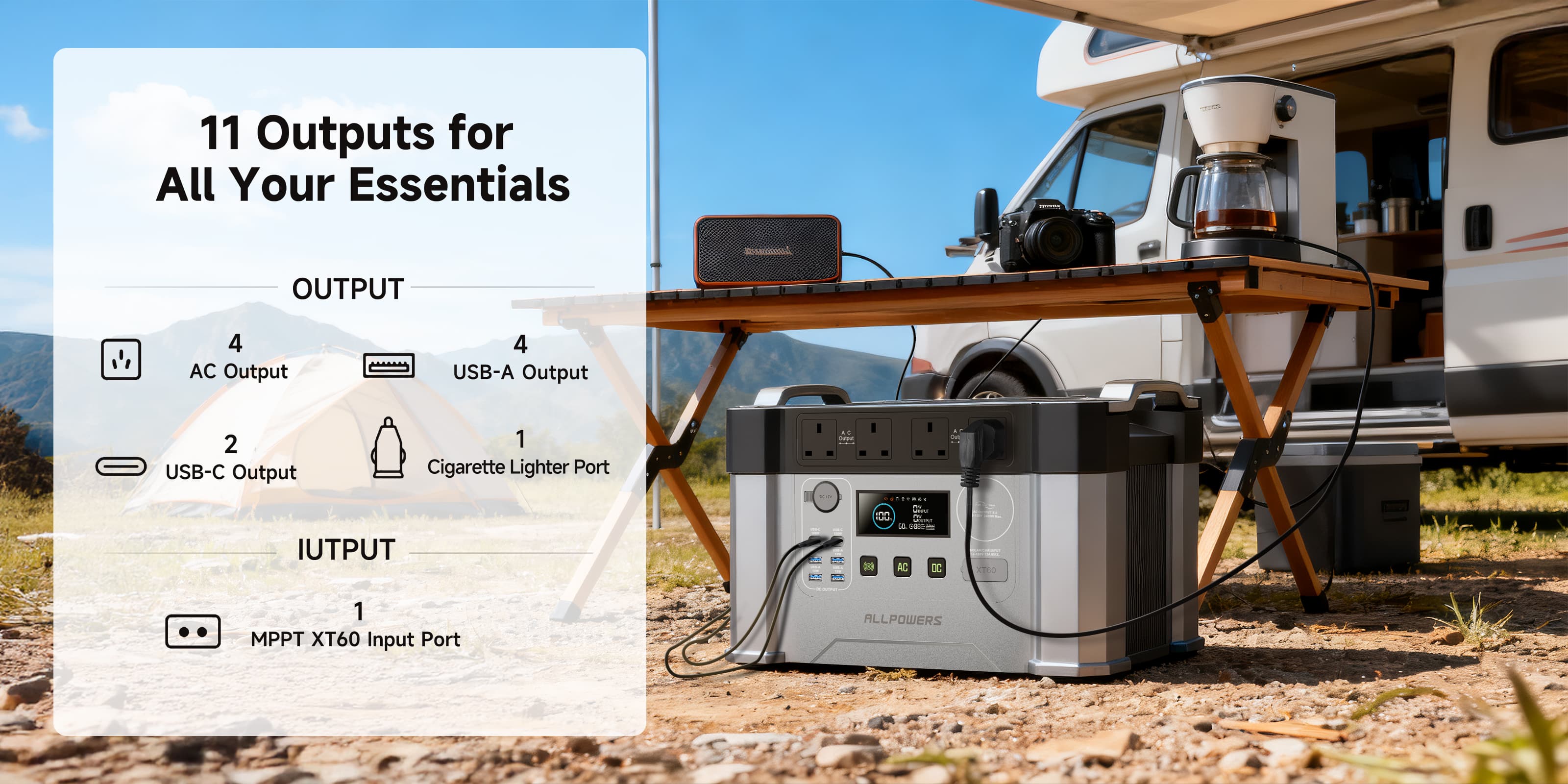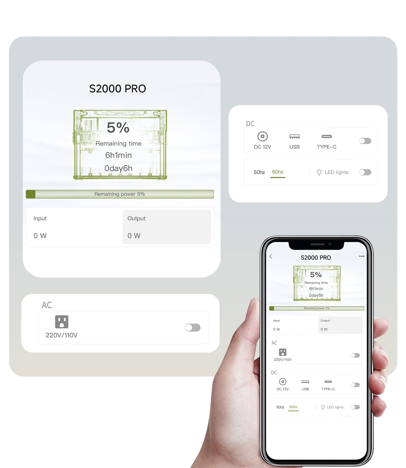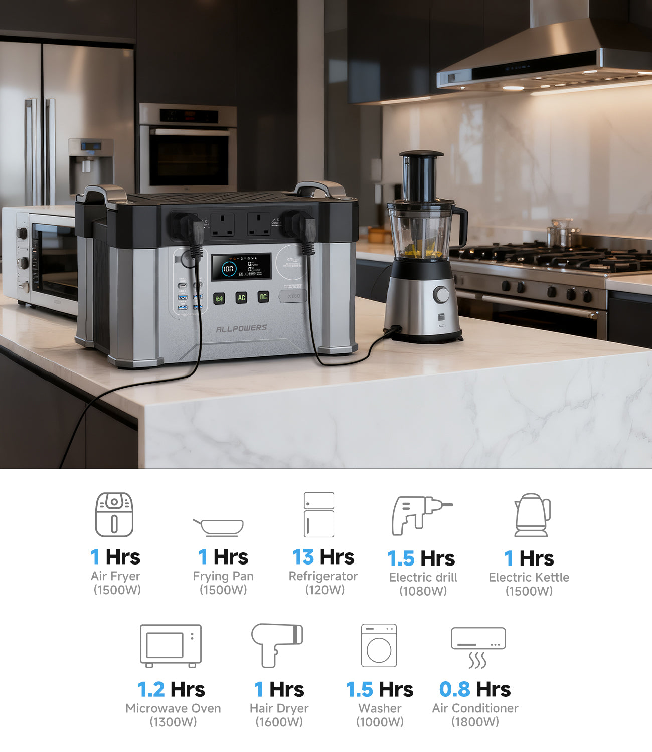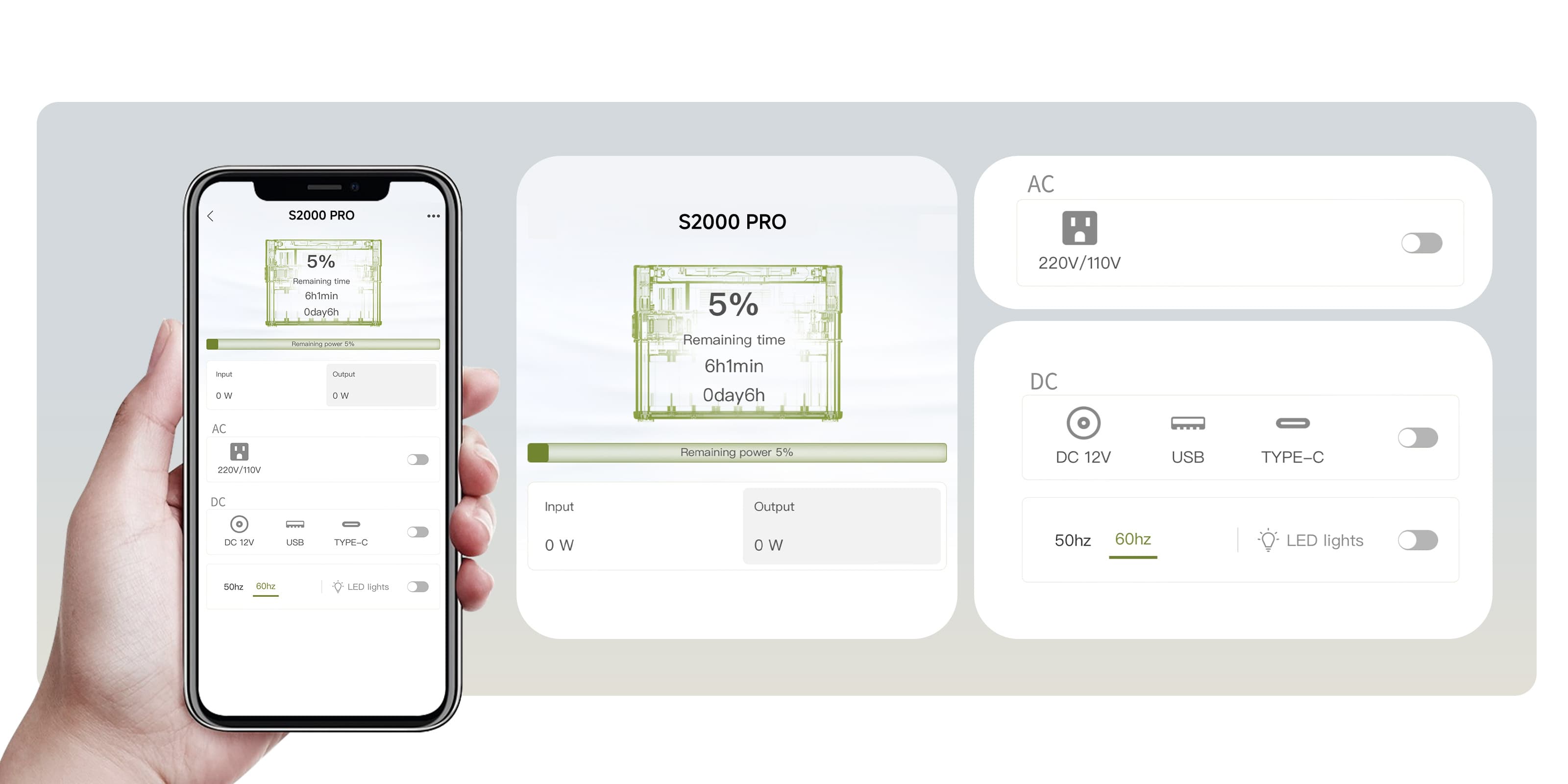 The S2000 Pro has a 2400W AC output (4000W peak), allowing you to power devices with a rated power of up to 2400W and a peak power of up to 4000W.