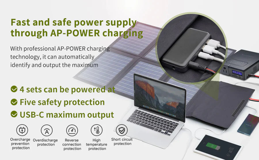 It can be folded into a briefcase for easy transport. You can place the panel on the outside of the bag, absorbing solar energy anywhere under strong sunlight.Portable & Compact