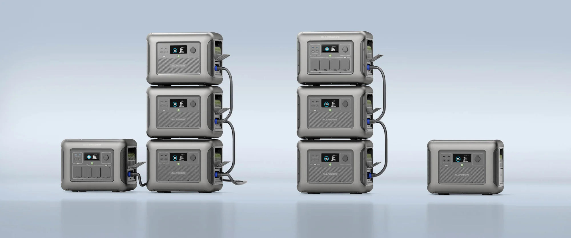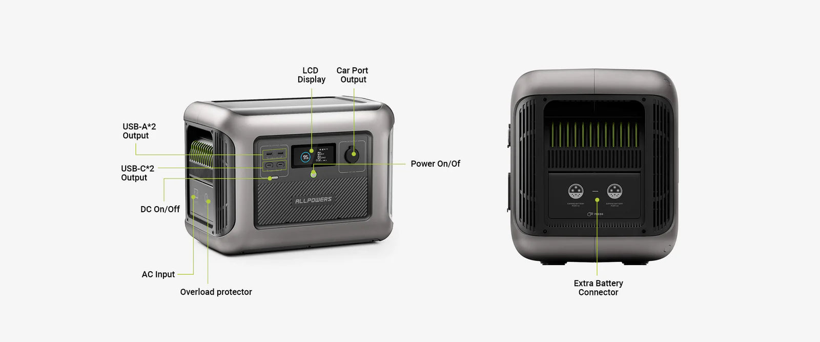 - Compatible with R1500 for a maximum of 4,608Wh capacity. (1*R1500 or 1*R2500 +3*B1000)