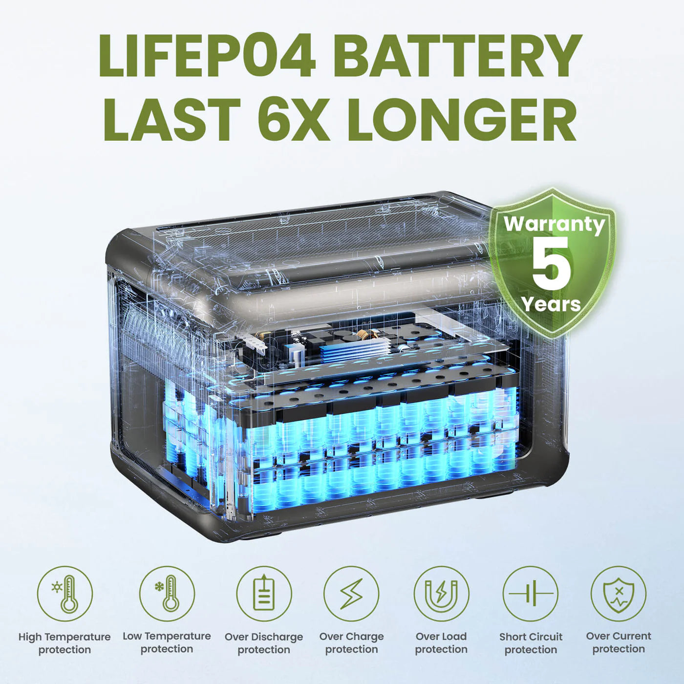 - Long-life LiFeP04 battery with over 3,500 charging cycles;