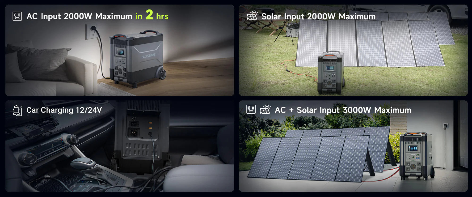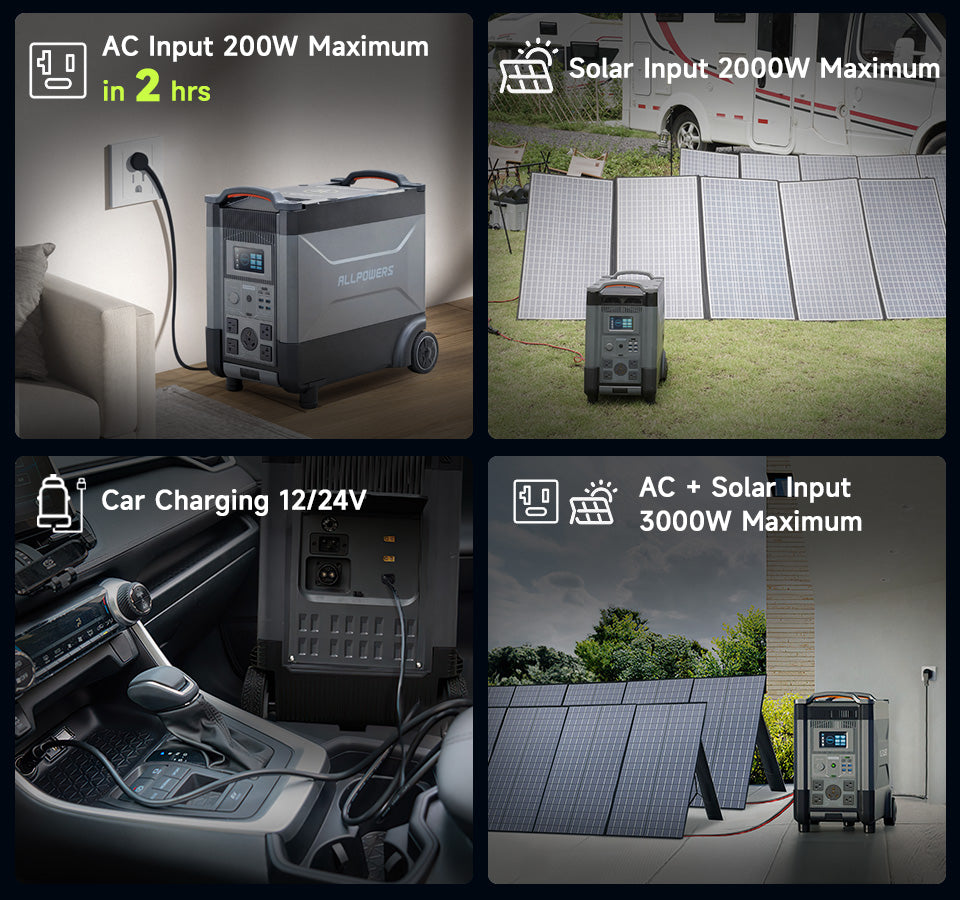 From at-home charging to more on-the-go solutions, we provide five ways to recharge your R4000: AC Charging, Solar Charging, Dual Charging(AC+Solar ), and Car Charging.