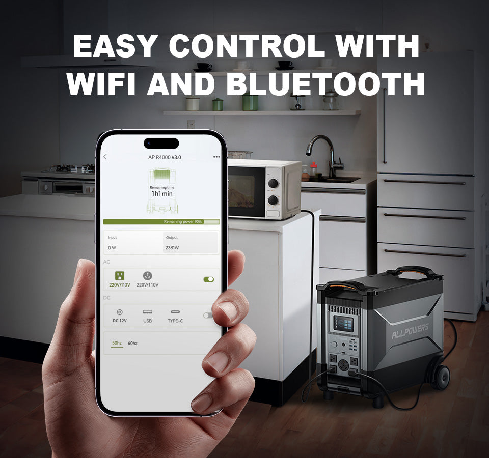 In addition to operating with the buttons and touch panel on the main unit, if you have a smartphone, you can check the capacity of the portable power supply R4000, check its operation, and control it with a dedicated app.Both operation screens are easy to understand and easy to operate, even people who are not good at mechanics can easily operate.Easy to realize by connecting with ALLPOWERS APP via WIFI power monitoring/function setting/remote control/system upgrade.
