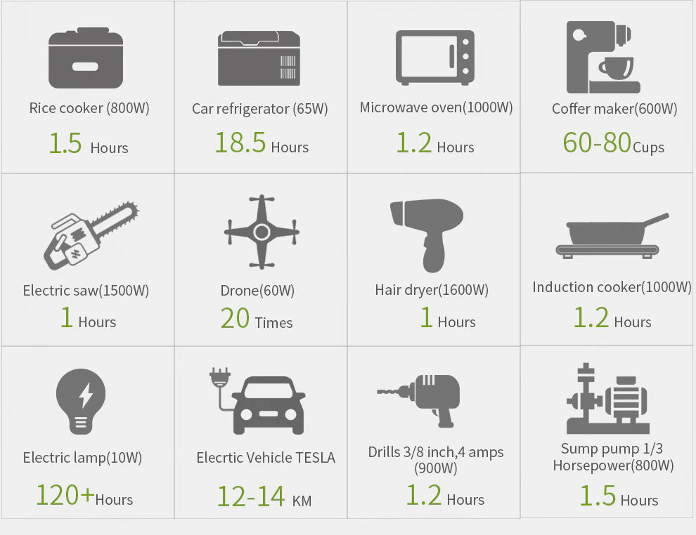 - Recharge from 0-100% in 1.6 Hours(AC+solar input);