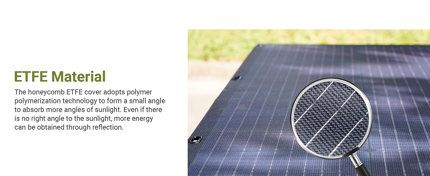 The honeycomb ETFE cover adopts polymer polymerization technology to form a small angle to absorb more angles of sunlight. Even if there is no right angle to the sunlight, more energy can be obtained through reflection.