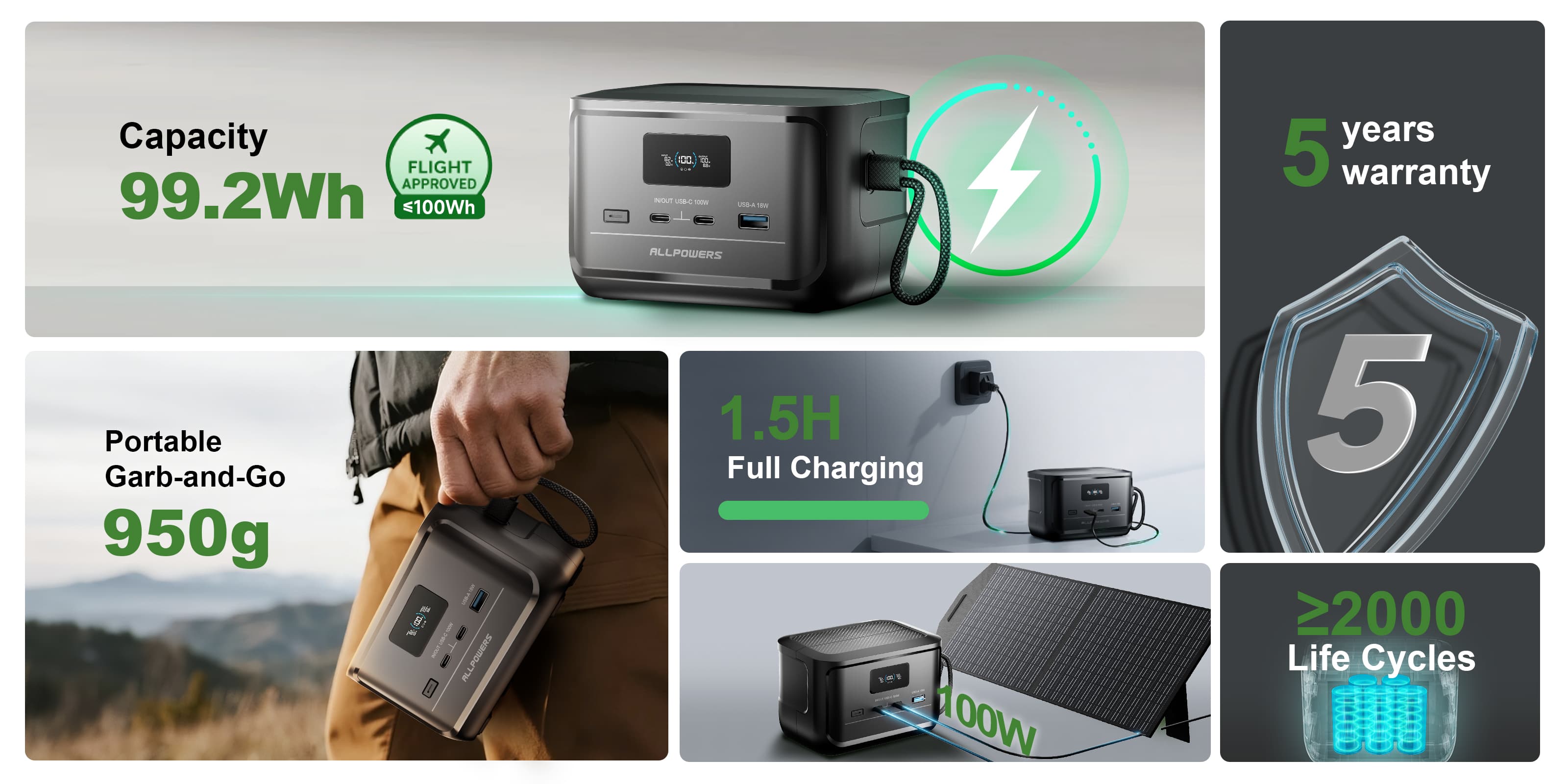 Compact and flight-friendly, the SOLAX P100 features a 99.2Wh LiFePO4 battery to keep your phone, laptop, camera, or drone powered wherever you go. Whether you're flying, hiking, or working remotely, it's the ultimate travel power companion.