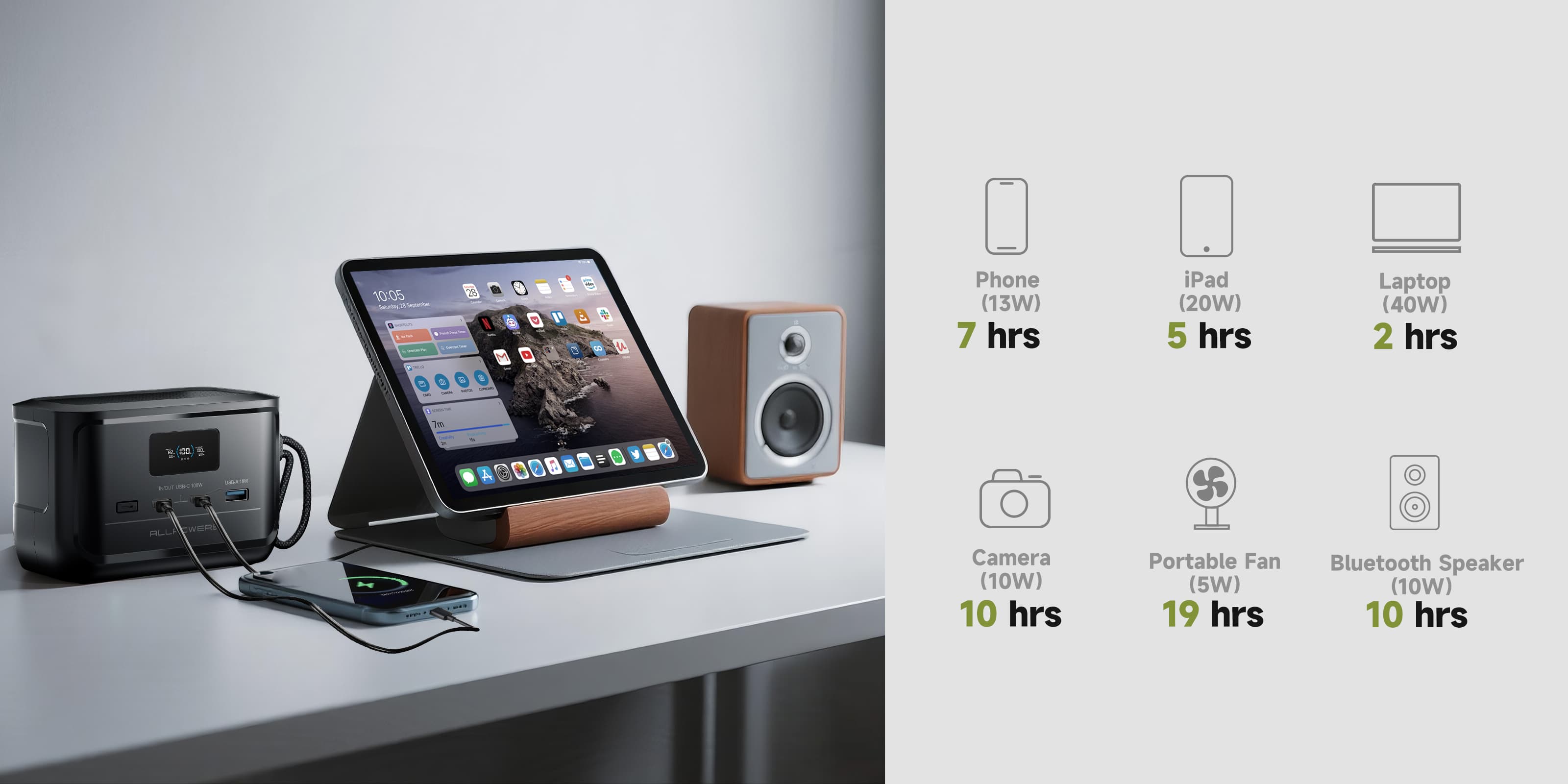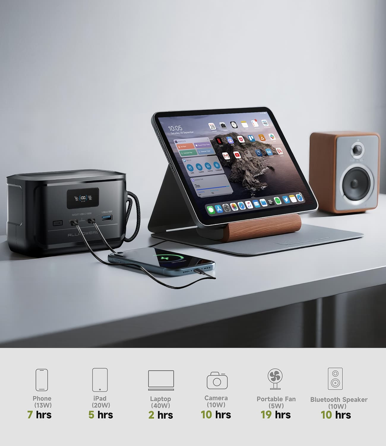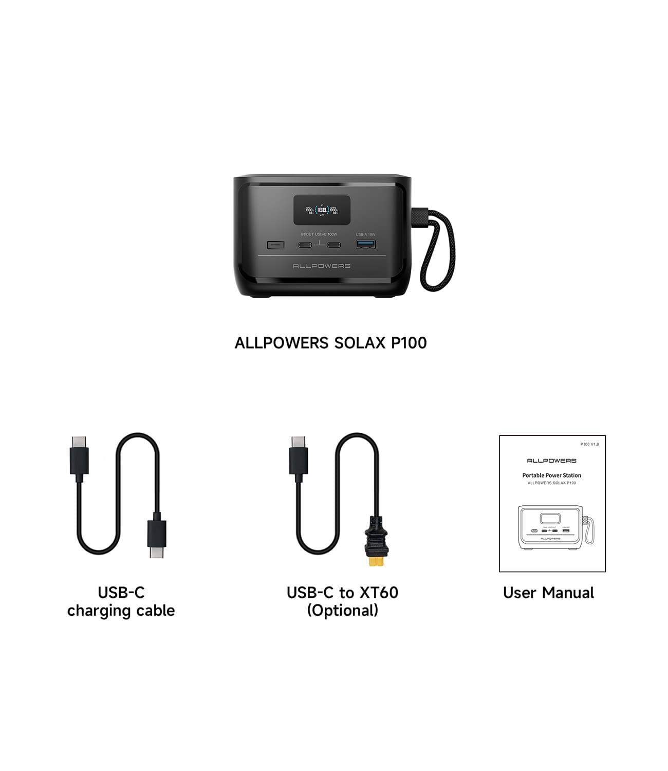 The SOLAX P100 has a 99.2Wh capacity , making it ideal for charging small devices such as phones, laptop, wireless earbuds, smartwatches, handheld game consoles, action cameras, and more — perfect for travel, daily use, and short outdoor adventures.