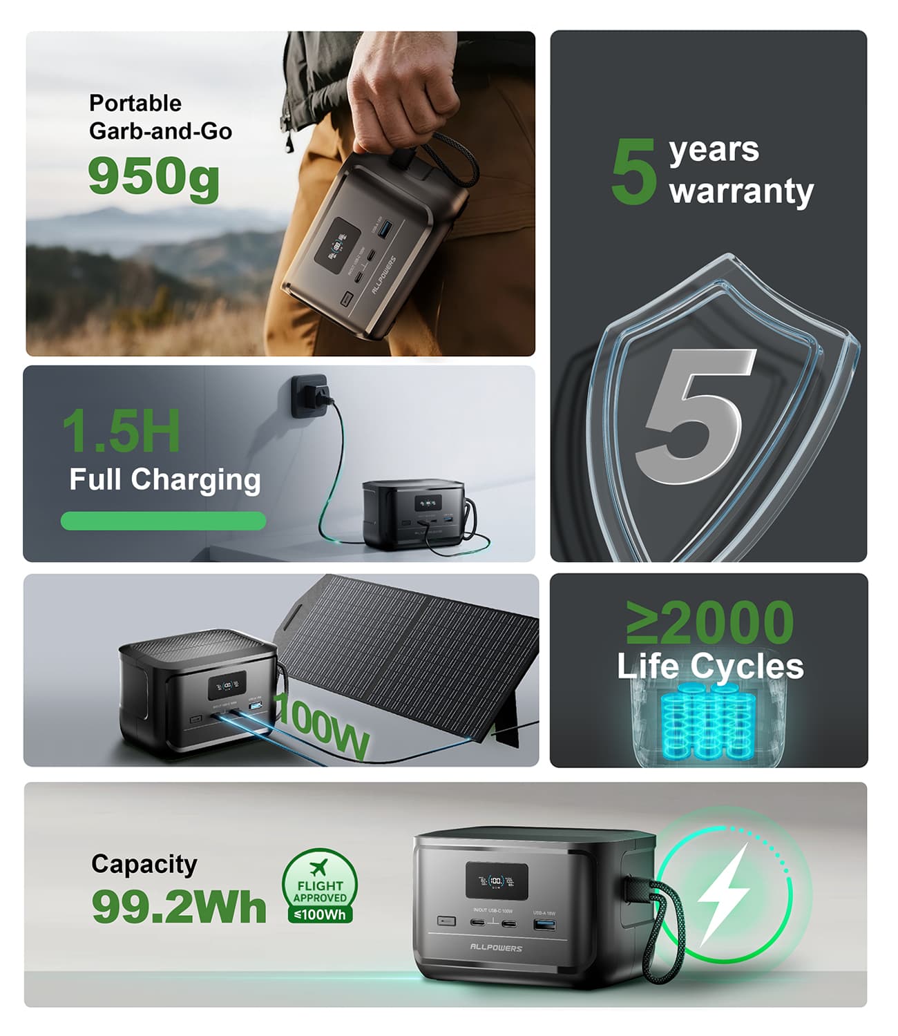 Compact and travel-ready, the SOLAX P100 features a 99.2Wh LiFePO4 battery that's airline-approved—keeping your devices powered on flights, hikes, or remote work.