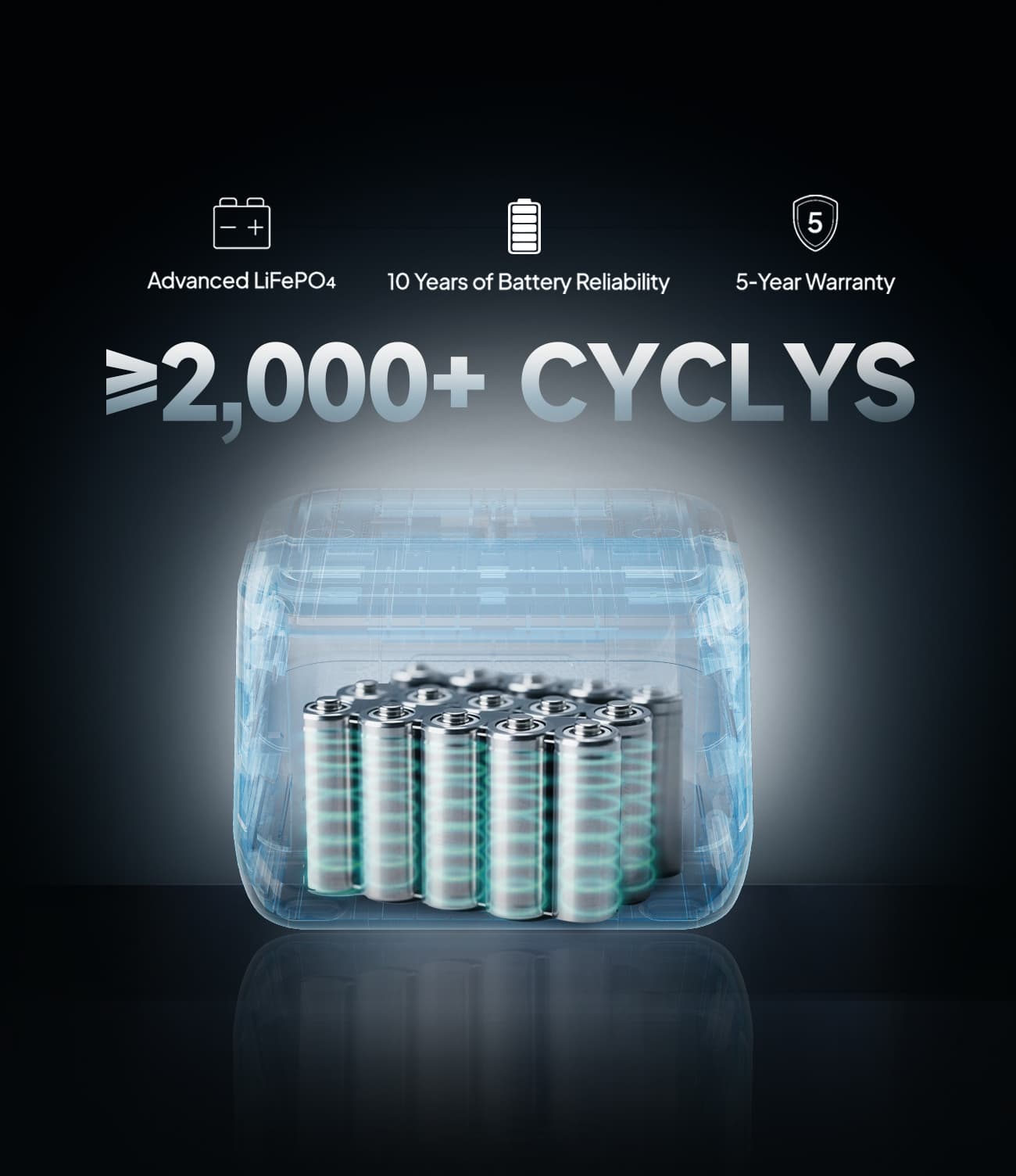 Enjoy 2000+ cycles, 10 years of battery life, and a solid 5-year warranty — power that truly goes the distance.