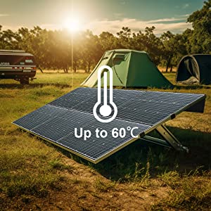 ALLPOWERS 600W foldable solar panel made in monocrystalline solar cells, has high conversion efficiency, which is up to 23%. 600W portable solar panel generates more energy and perform better than conventional solar panels in any weather,even cloudy or cold days.