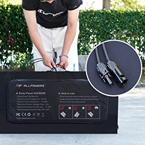 With Solar Connector Output ports, ALLPOWERS 600W solar panel provides 44V huge power for your solar generators, such as ALLPOWRS S2000 Pro/R4000/R3500/R2500/R1500 and other large generators on the market. Great for RV travel, cause it's easy to fixed on the top of RV.