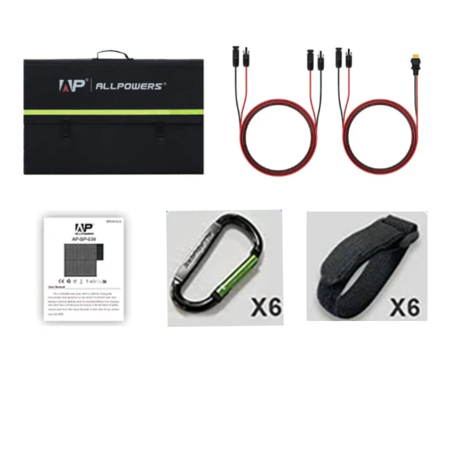 The SP039 600W solar panel is equipped with 6 black buckle ropes and 6 carabiner hooks, which can be bound or buckled where the solar panel is to be fixed to prevent the panel from being placed stably, obtain more solar light, and improve solar energy conversion efficiency.